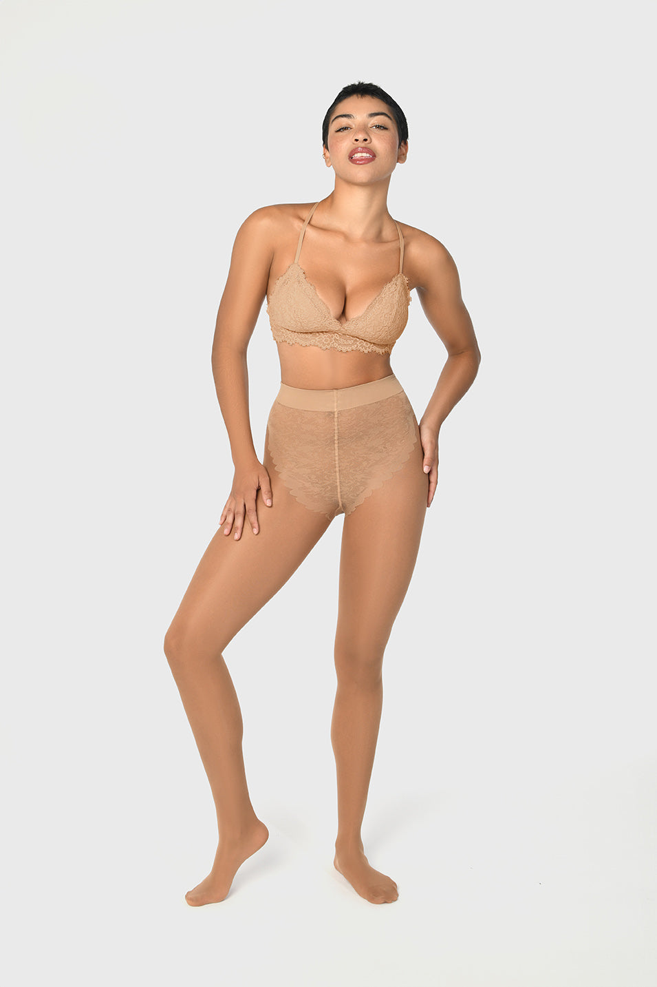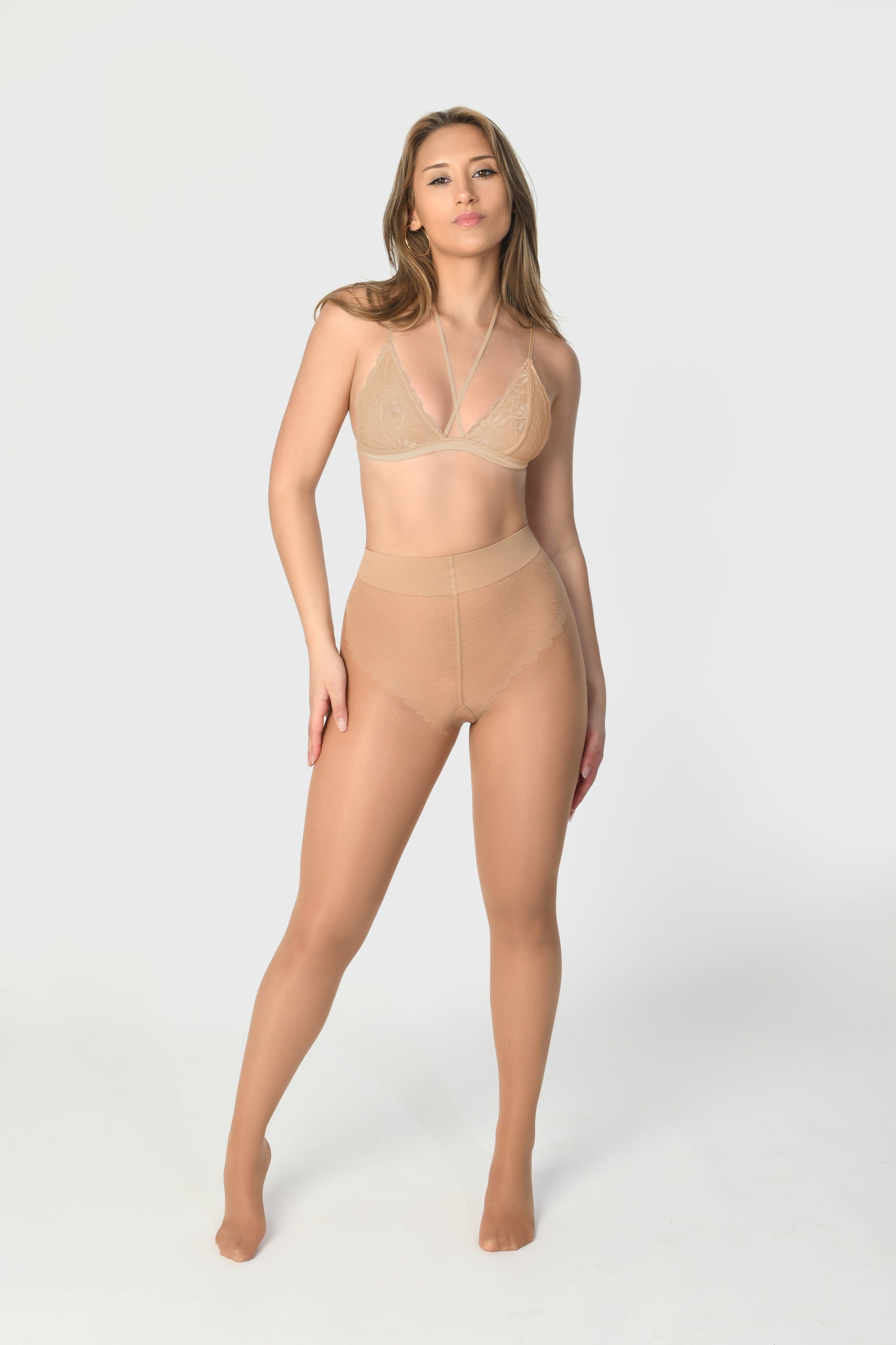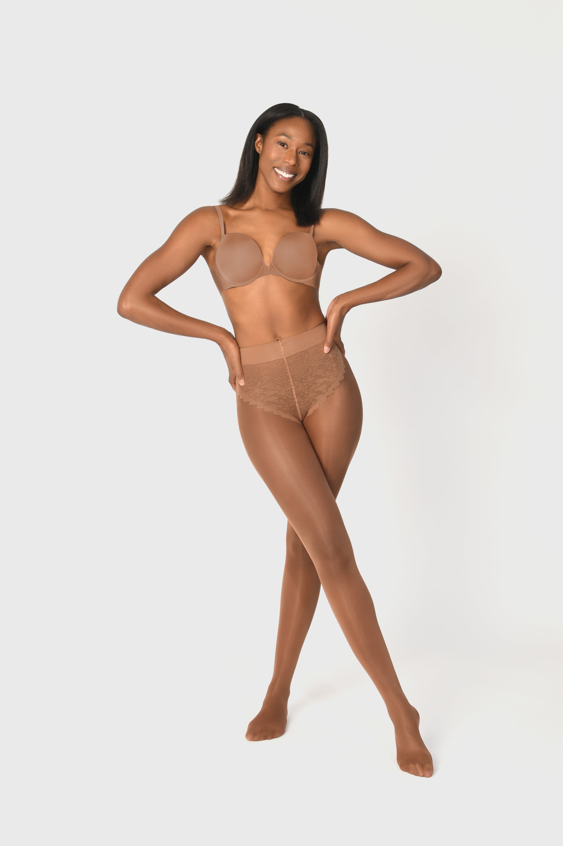 - Sheer to waist