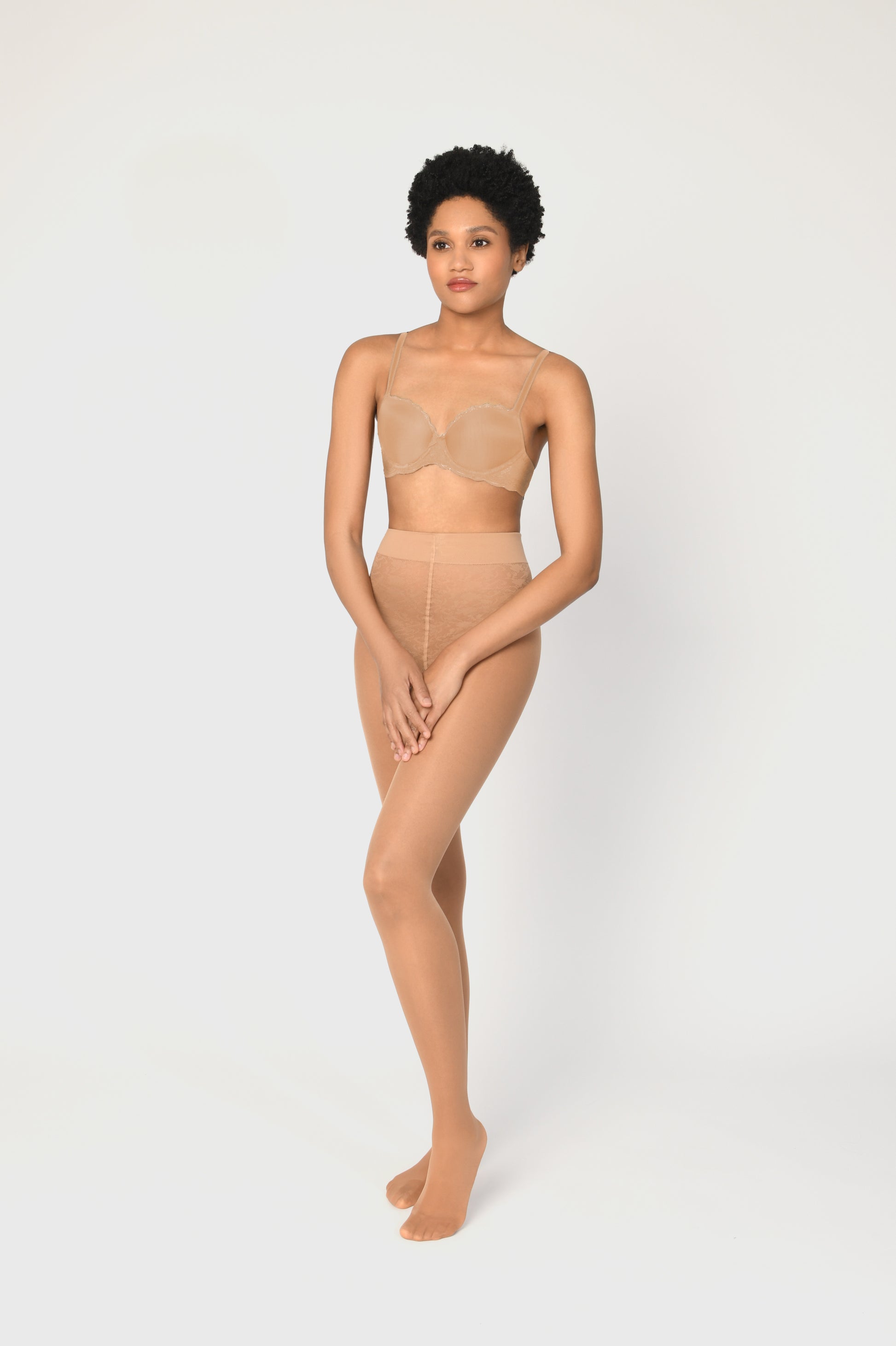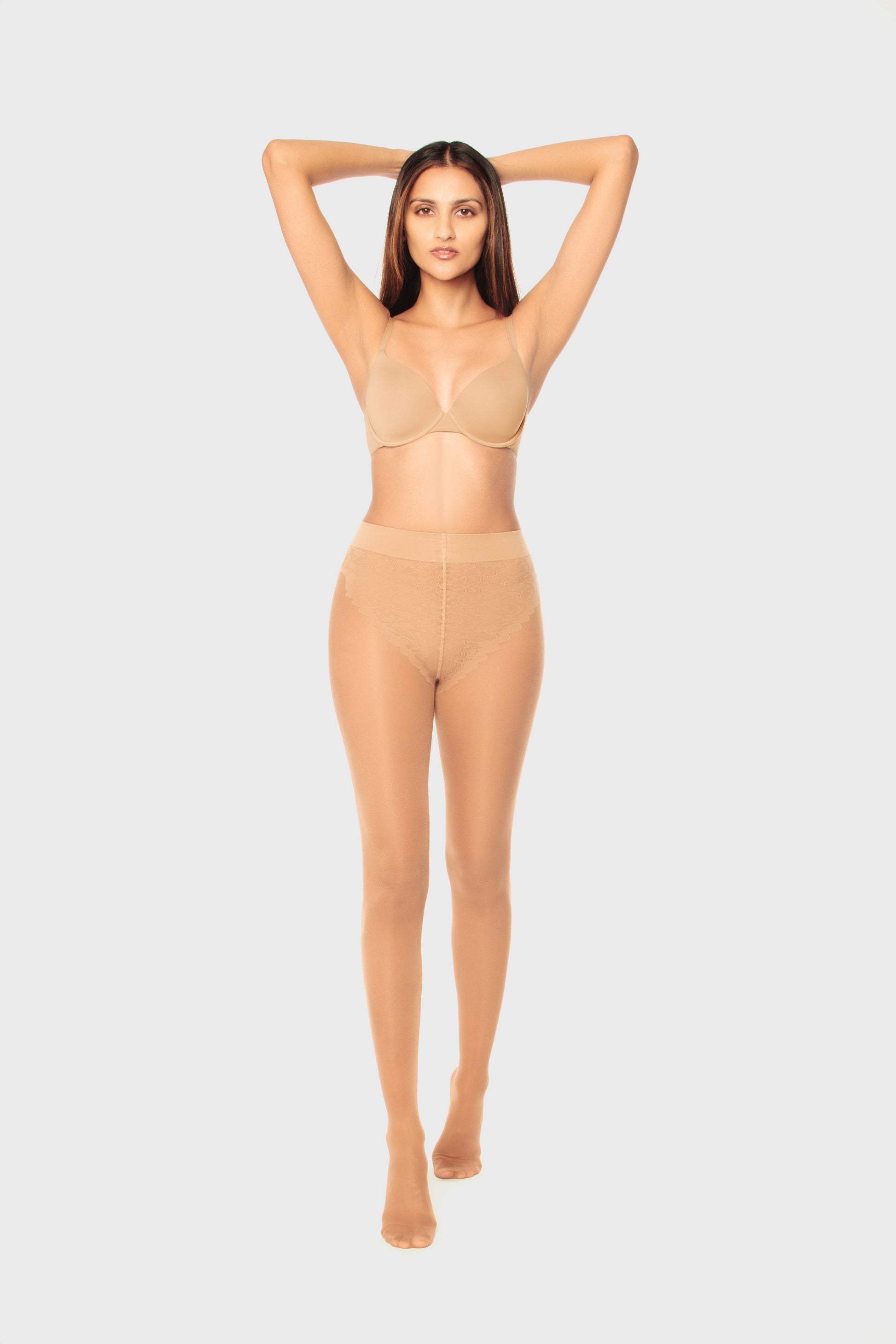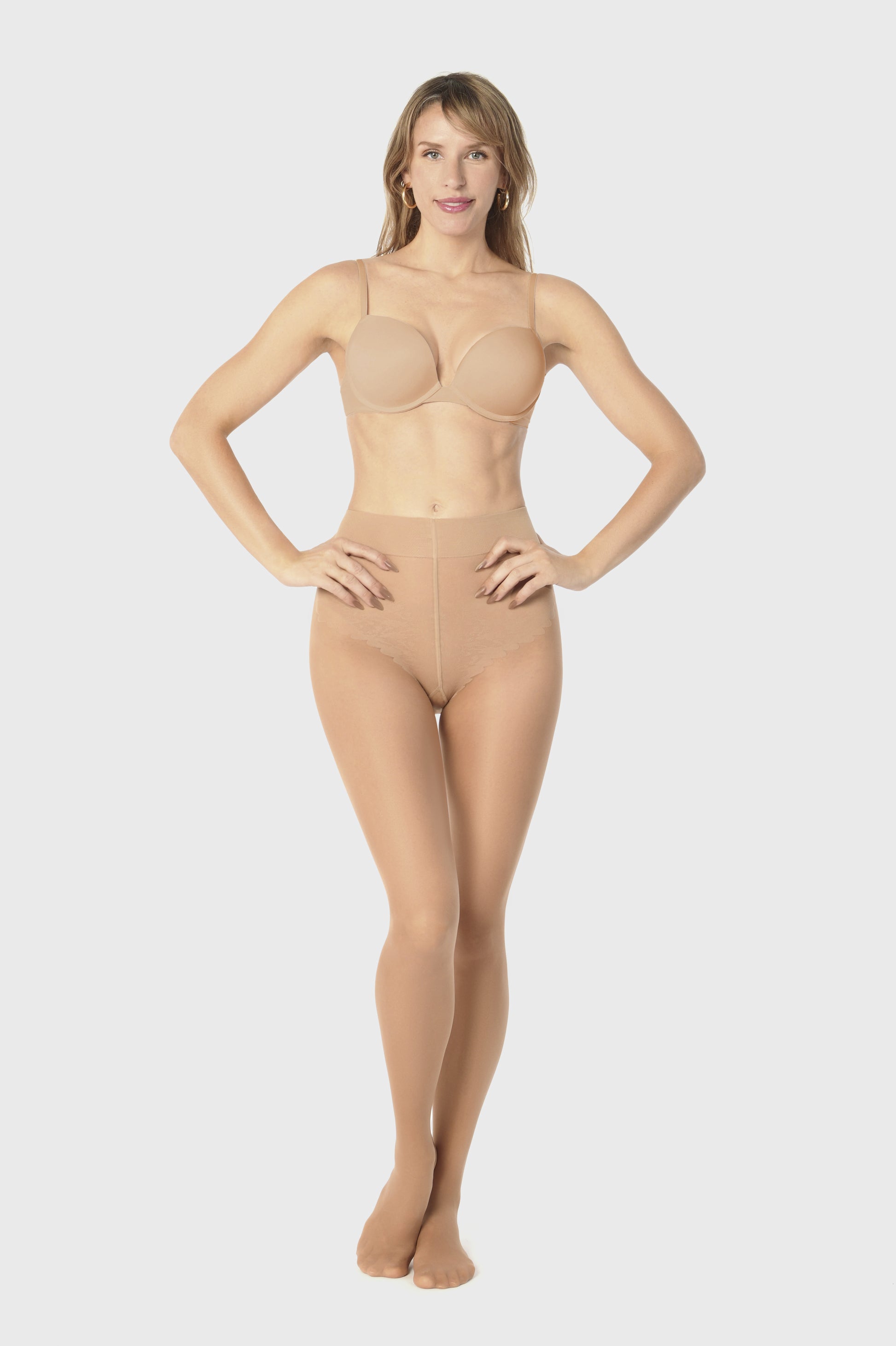 Elevate your inflight experience with our 70 denier graduated compression tights, meticulously designed for ultimate comfort and support. Crafted from a sheer, plain knit fabric, these tights feature a bikini panty with a delicate lace pattern and interlaced elastic band, ensuring a secure fit without sacrificing style. With a flat seam, cotton gusset, and reinforced toe, every detail is tailored to perfection. Experience improved blood circulation and reduced fatigue as you glide through your day with ease. Available in 10 shades of skin undertones and 5 different sizes, find your perfect match and step into unparalleled comfort and confidence.